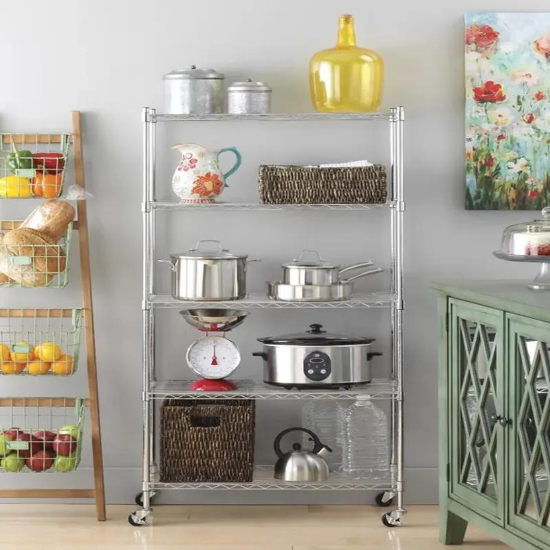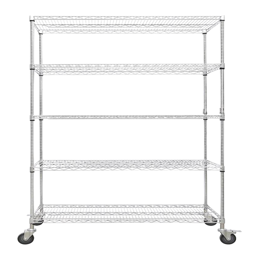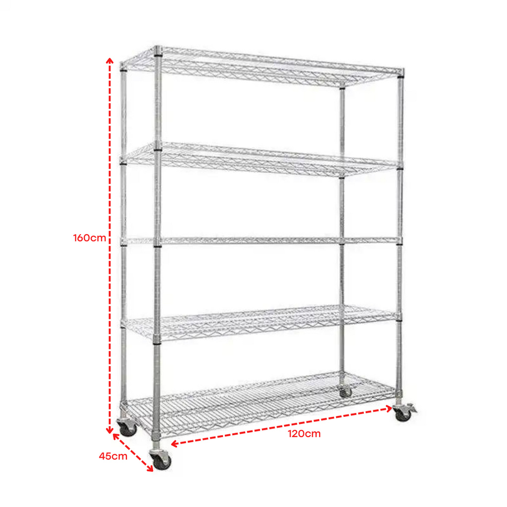 Rack Metálico Cromado de 5 Niveles 100kg con Ruedas & Frenos 160*120*45cm R160X120X45