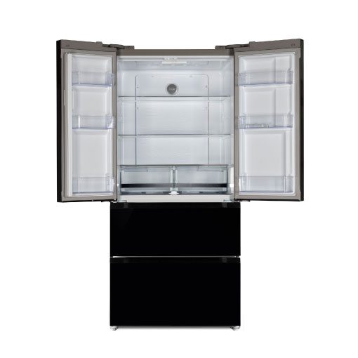 La refrigeradora Black-18D4P ofrece estilo y funcionalidad con su diseño de 4 puertas en espejo negro estilo francesas. Con dos compartimentos superiores de refrigerador y dos inferiores de congelador, ofrece una distribución óptima. Sus estantes de vidrio templado brindan resistencia y facilidad de limpieza. Además, cuenta con una práctica bandeja de hielo manual para mantener tus bebidas siempre frescas. Ideal para quienes buscan un electrodoméstico moderno y eficiente para su hogar.