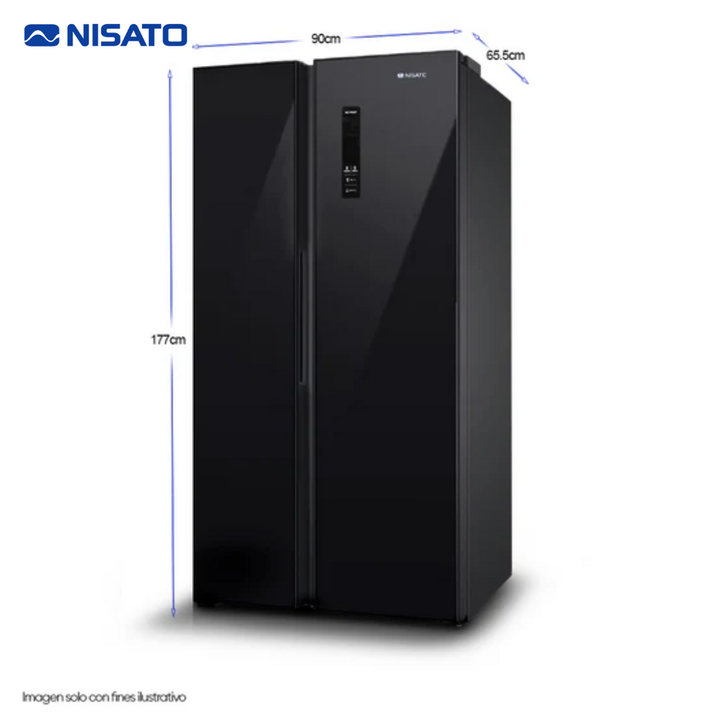 Refrigeradora Side By Side Vidrio Negro No Frost 17P3 Inverter Nisato NRF-715GSMH