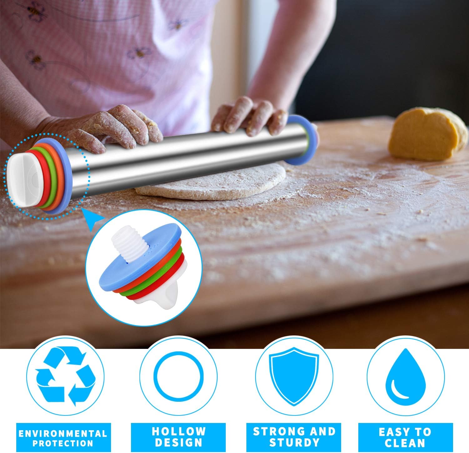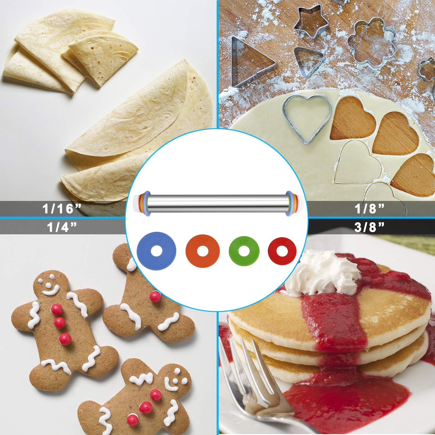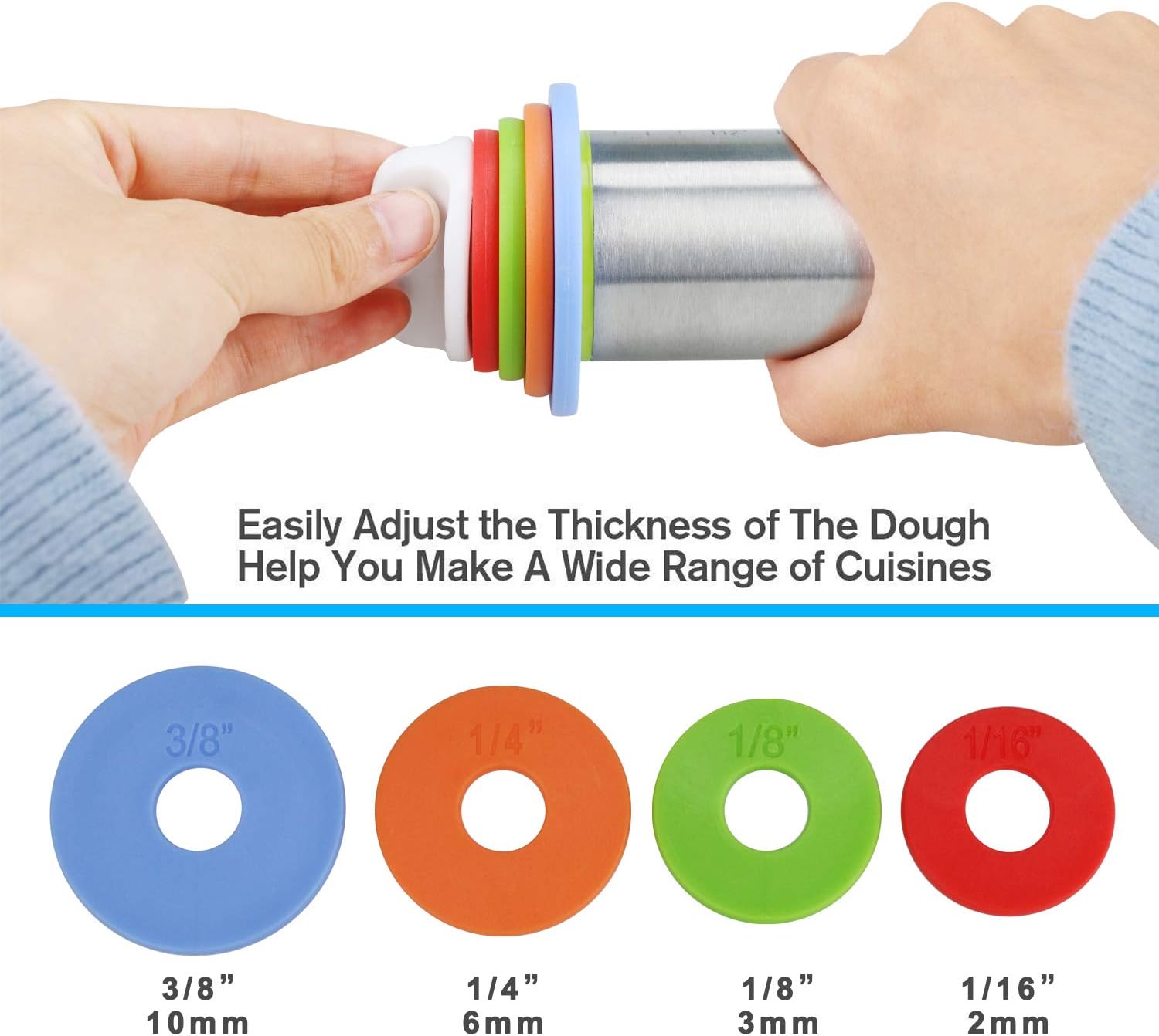 Rodillo de Acero Inoxidable Antiadherente con 4 Anillos de Disco Ajustable Excalibur EX-M16-KT2203