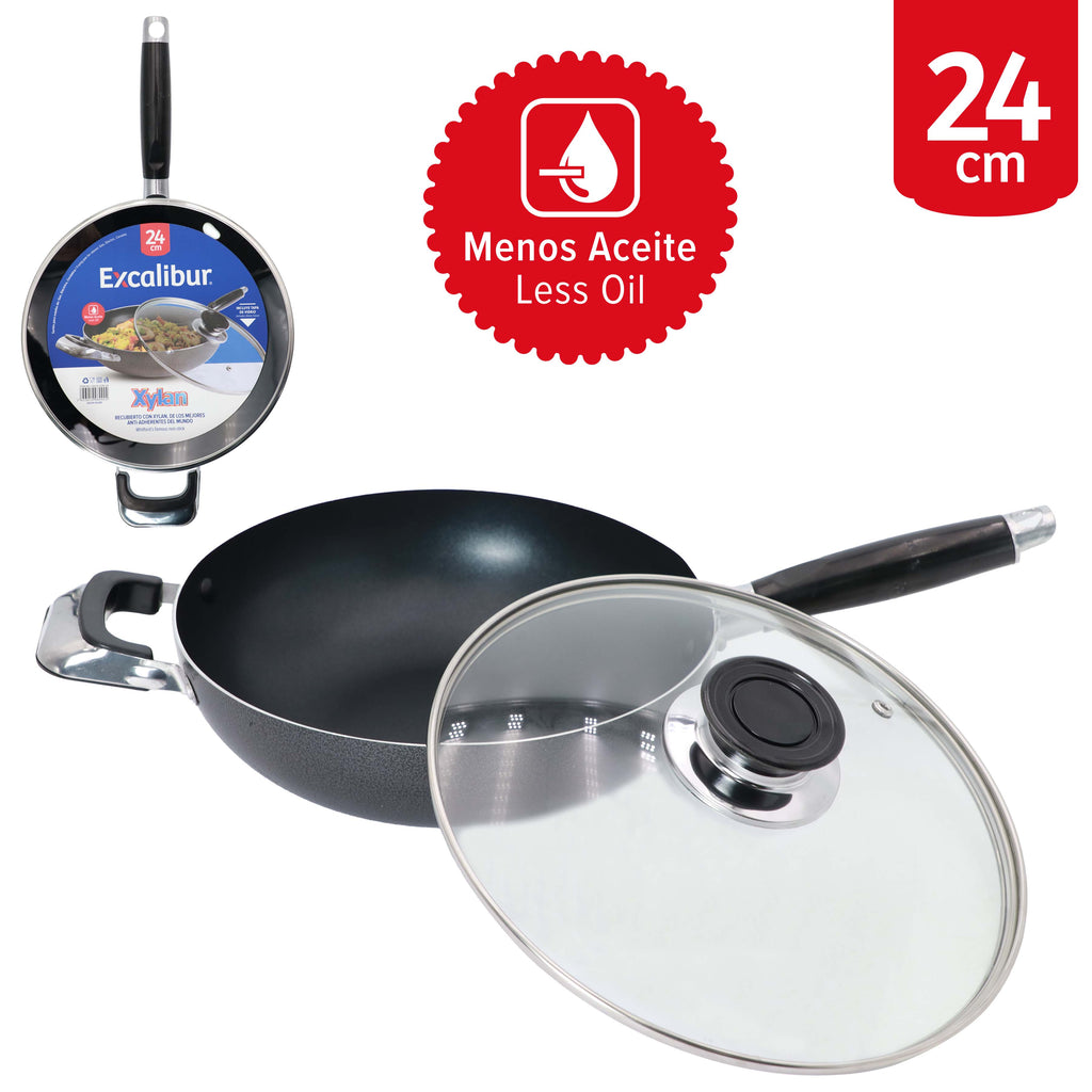 Sartén con Tapa de Vidrio de 24cm Antiadherente Excalibur 7A018-SDN-24
