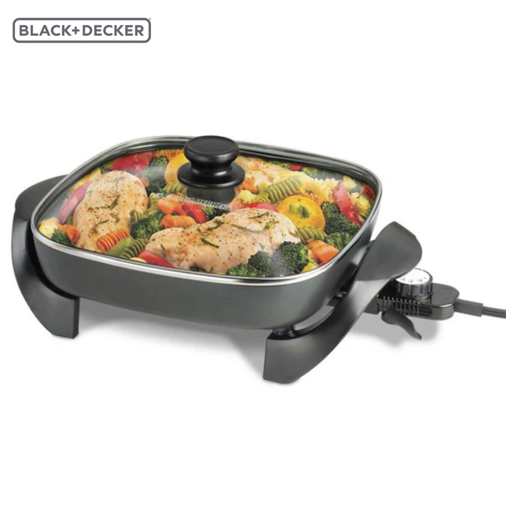 Sartén BLACK DECKER cuenta con una zona de cocción y el interior profundo para cocinar sano para toda la familia. El control de temperatura variable de cocina rápida y asas frescas al tacto - perfectos para servir de mesa. Exceso de grasa se elimina con la pata de inclinación pan aceite y grasas de lo que estás cocinando.