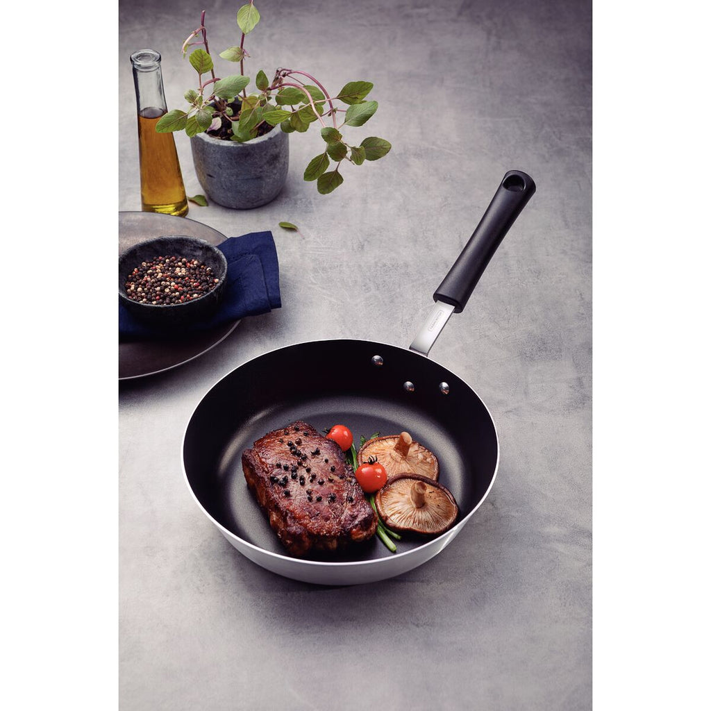 Cuerpo de aluminio con 2 mm de espesor que proporciona cocción rápida y uniforme. Revestimiento interno de antiadherente Starflon Max, que no deja que se peguen los alimentos y es fácil de limpiar, más durable y no perjudicial para la salud, ya que está libre de PFOA. Terminación externa lijada. Mango de baquelita antitérmica. Mayor resistencia antitérmica. Sistema de fijación de mango con 2 remaches. Mayor seguridad y estabilidad durante el uso. Se la puede usar en cocinas a gas, eléctricas y vitrocerámicas - resistencia eléctrica.