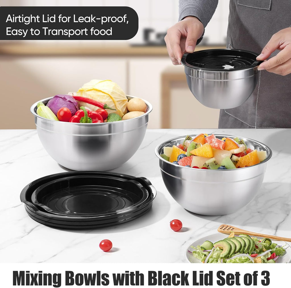 Set 3 Bowls de Acero Inoxidable con Tapa de Plástico 14cm 16cm y 18cm Lotus STL-607-3PCS