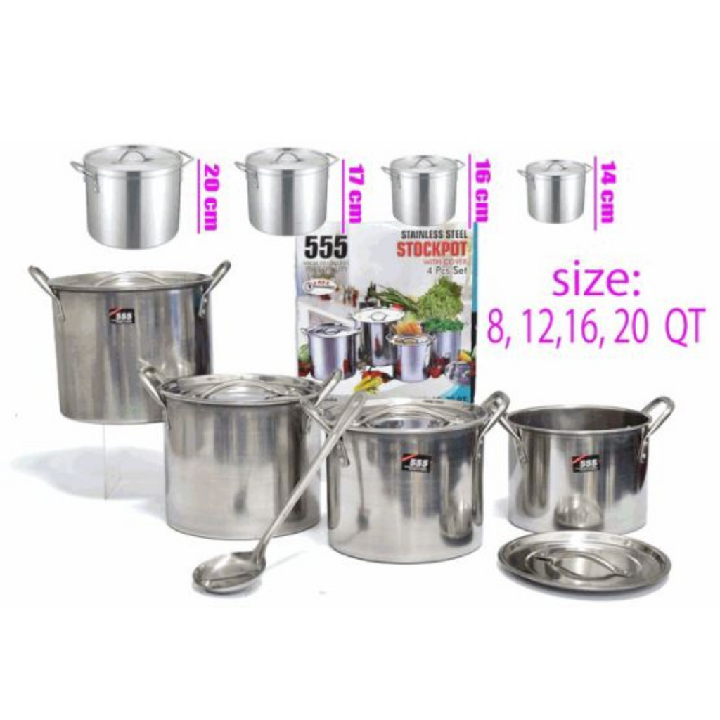 Set de 4 Ollas +1 Cucharon de Acero Inoxidable 555 MI-700