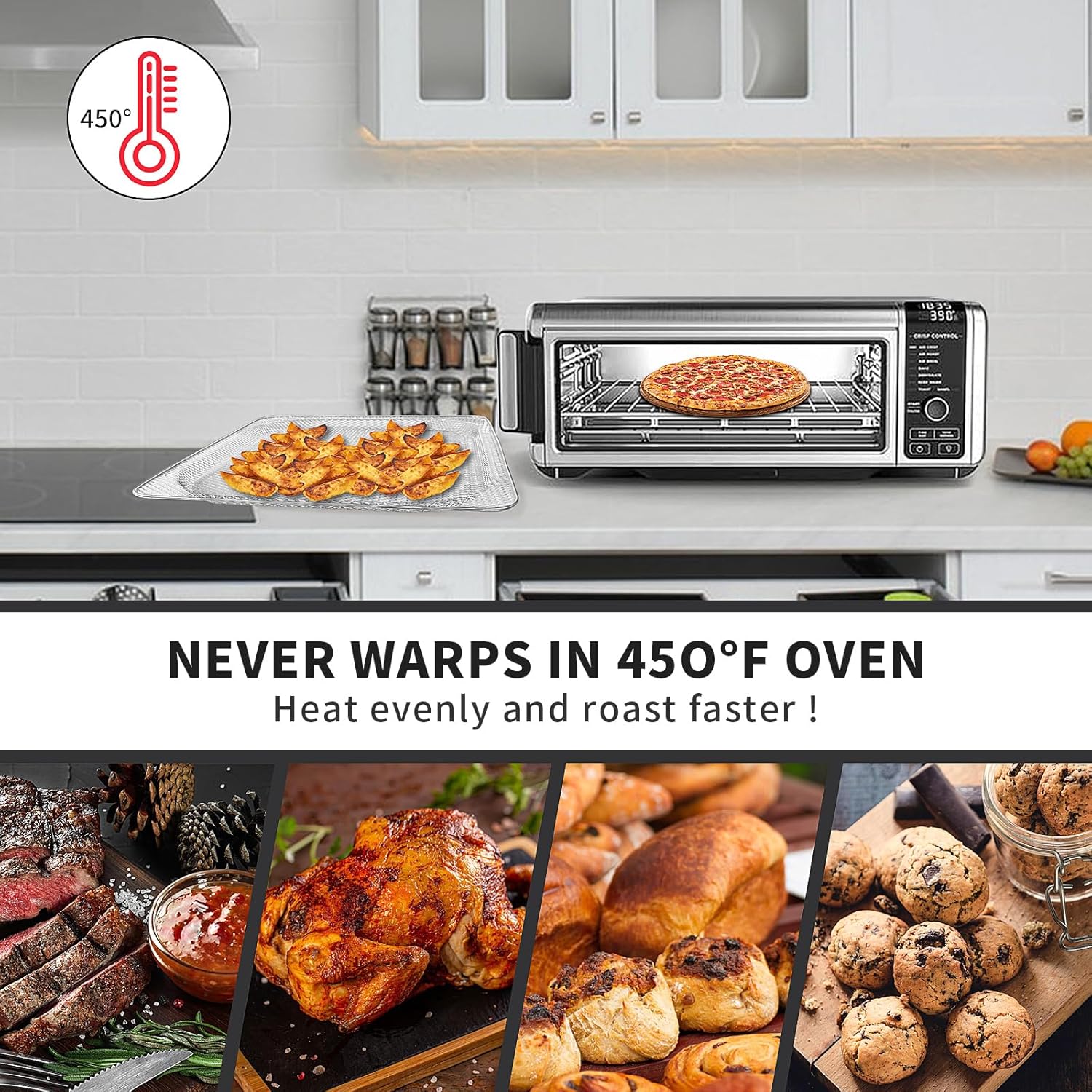 Más que un mini horno. 8 funciones de cocción - Air Fry, Asar, Hornear, Gratinar, Deshidratar, Tostar, Bagel y Mantener caliente. Obtenga una capacidad extra grande sin sacrificar espacio en la encimera con su diseño único que le permite voltearlo contra su salpicadero cuando no esté en uso.
