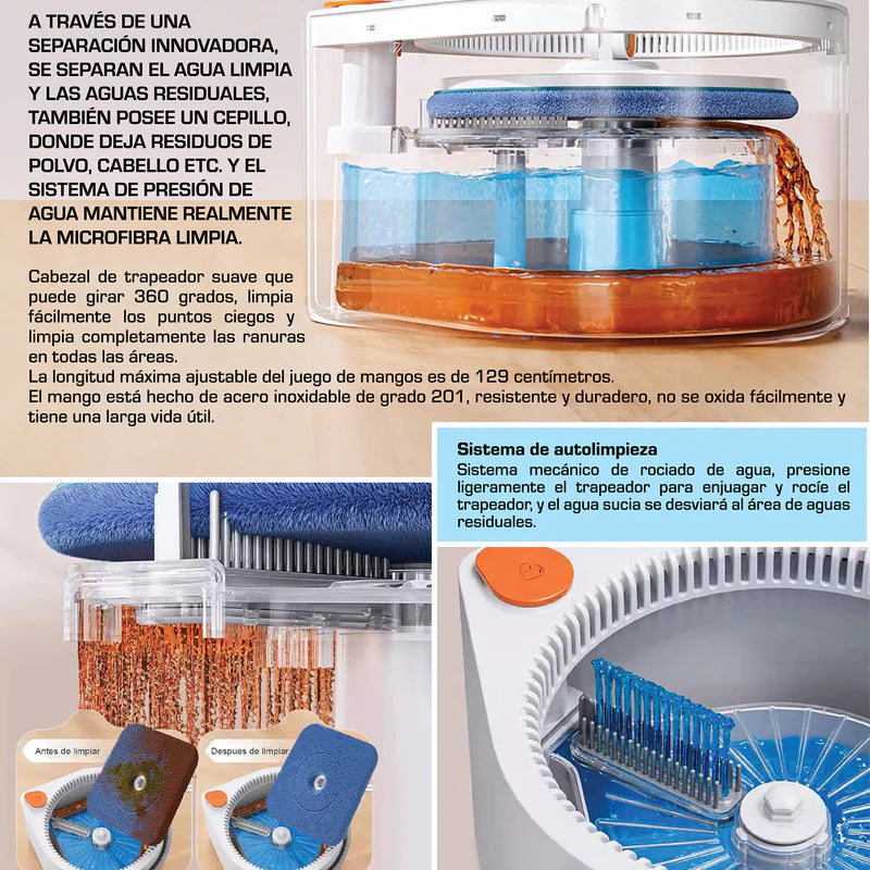 - Sistema de autolimpieza de mopa, bomba de rociado de agua por rotación que mantiene siempre limpia la mopa